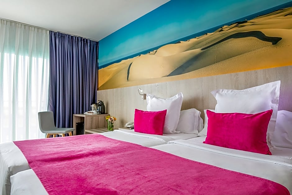 Featuring a furnished balcony, this bright room has modern décor, 2 single beds, a flat-screen TV with satellite channels, desk and a paying safe. There is a private bathroom with shower and hairdryer.